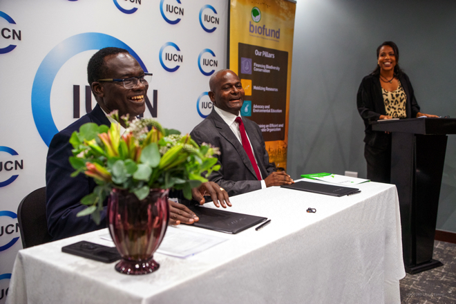 The memorandum was signed by Luther Bois Anukur, IUCN Regional Director for Eastern and Southern Africa (ESARO), and Carlos dos Santos, Chair of the Board of Directors of BIOFUND.